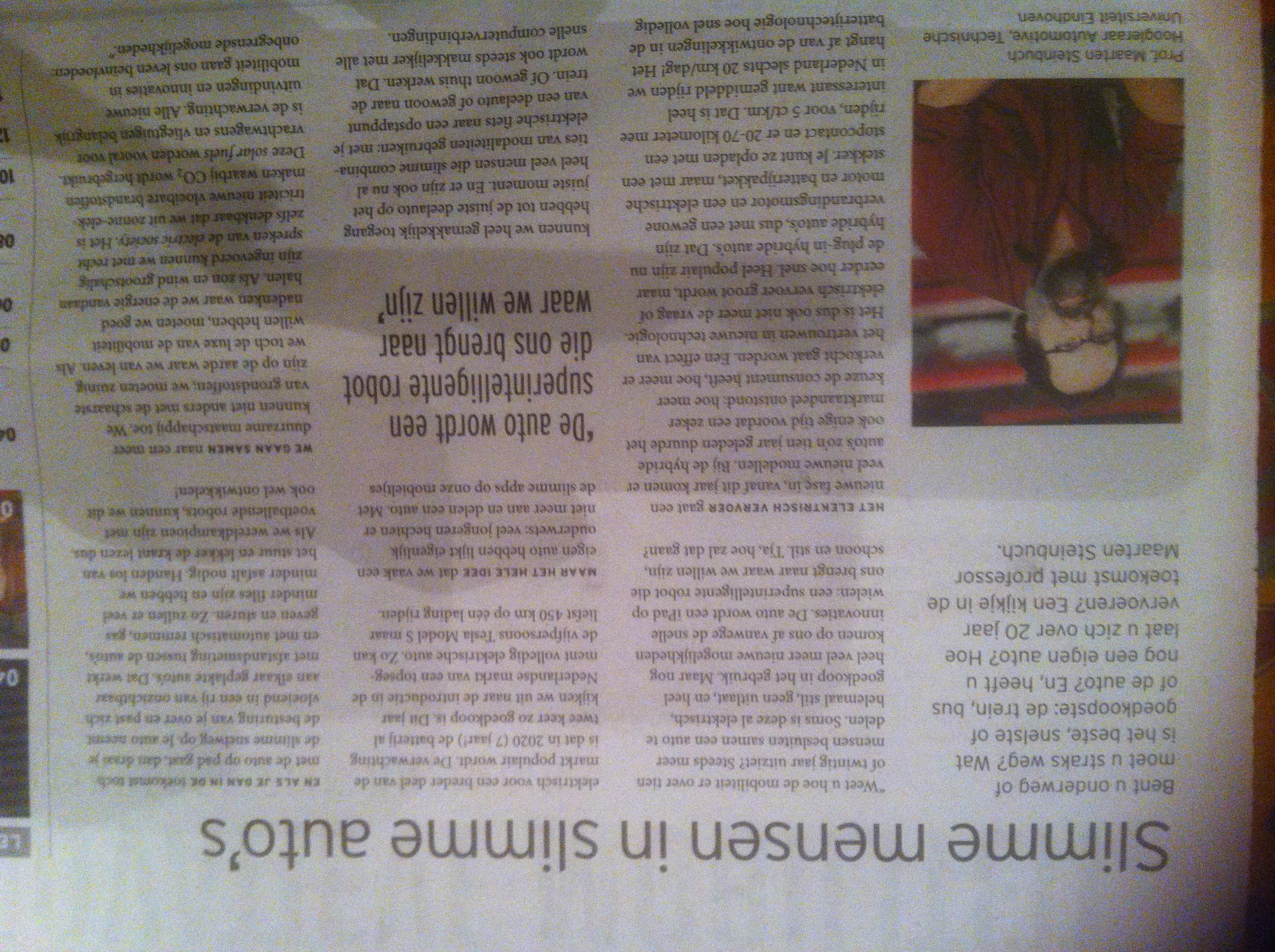Editorial bij de Telegraaf bijlage van 16 januari 2013, over Innovatieve Mobiliteit.