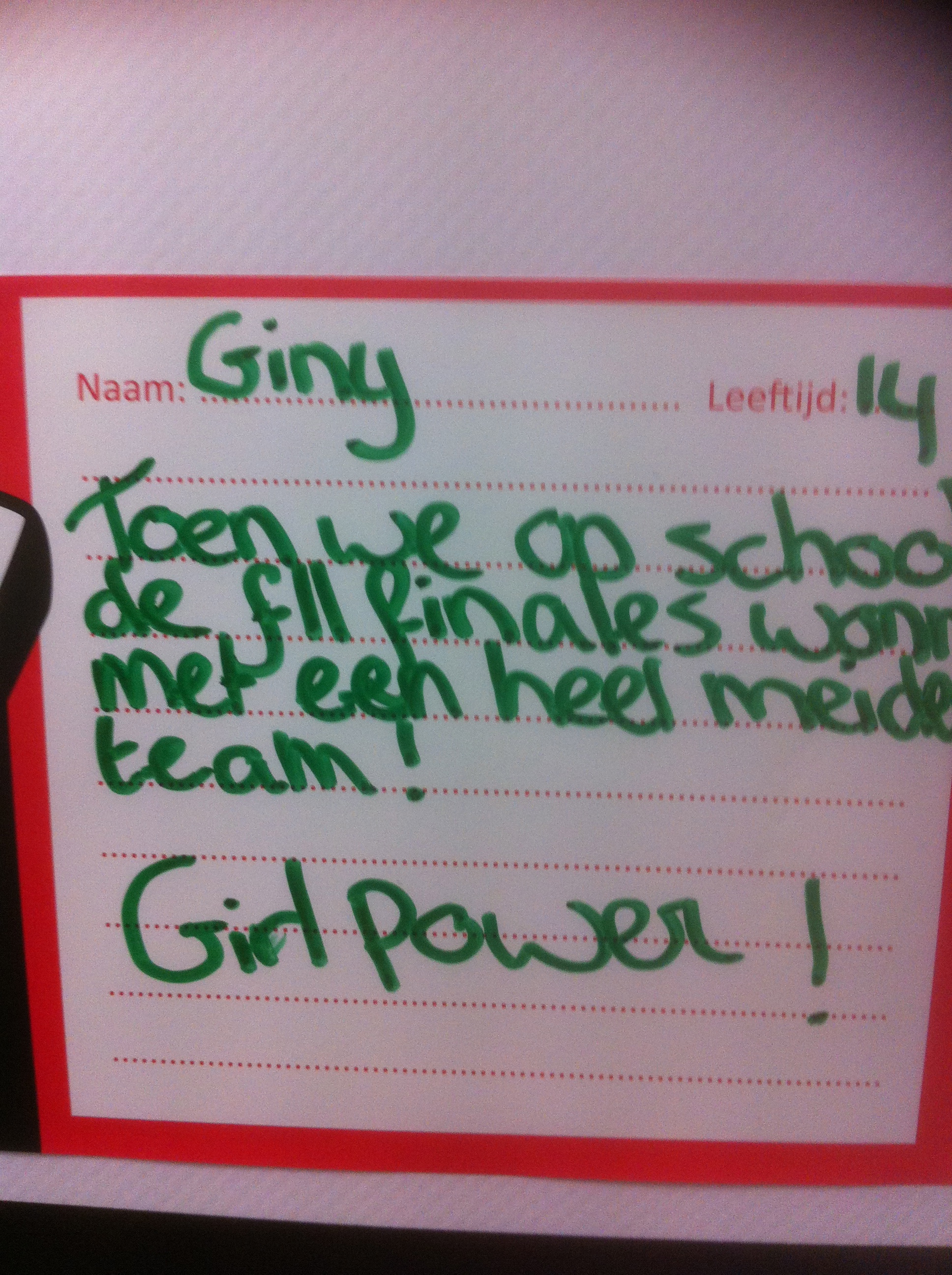 Zaterdag 2 februari 2013: de Benelux finale van de First Lego League 2012/2013, in Groningen: een zinderende en enerverende dag met vele kinderen en hun begeleiders, samenkomend om hun projectwerk te presenteren, te laten zien dat ze het beste team zijn met de beste oplossing en ook om hun robot te laten winnen op het wedstrijdveld. Het was weer een voorrecht er te zijn en geinspireerd te worden door het plezier van iedereen, door te laten zien dat je techniek moet beleven en doen, en dat er aan echte problemen kan worden gewerkt! Van de 480 (record!) teams die dit seizoen meededen, zijn de beste 44 hier verzameld in de MartiniPlaza in Groningen. In een prachtig complex met