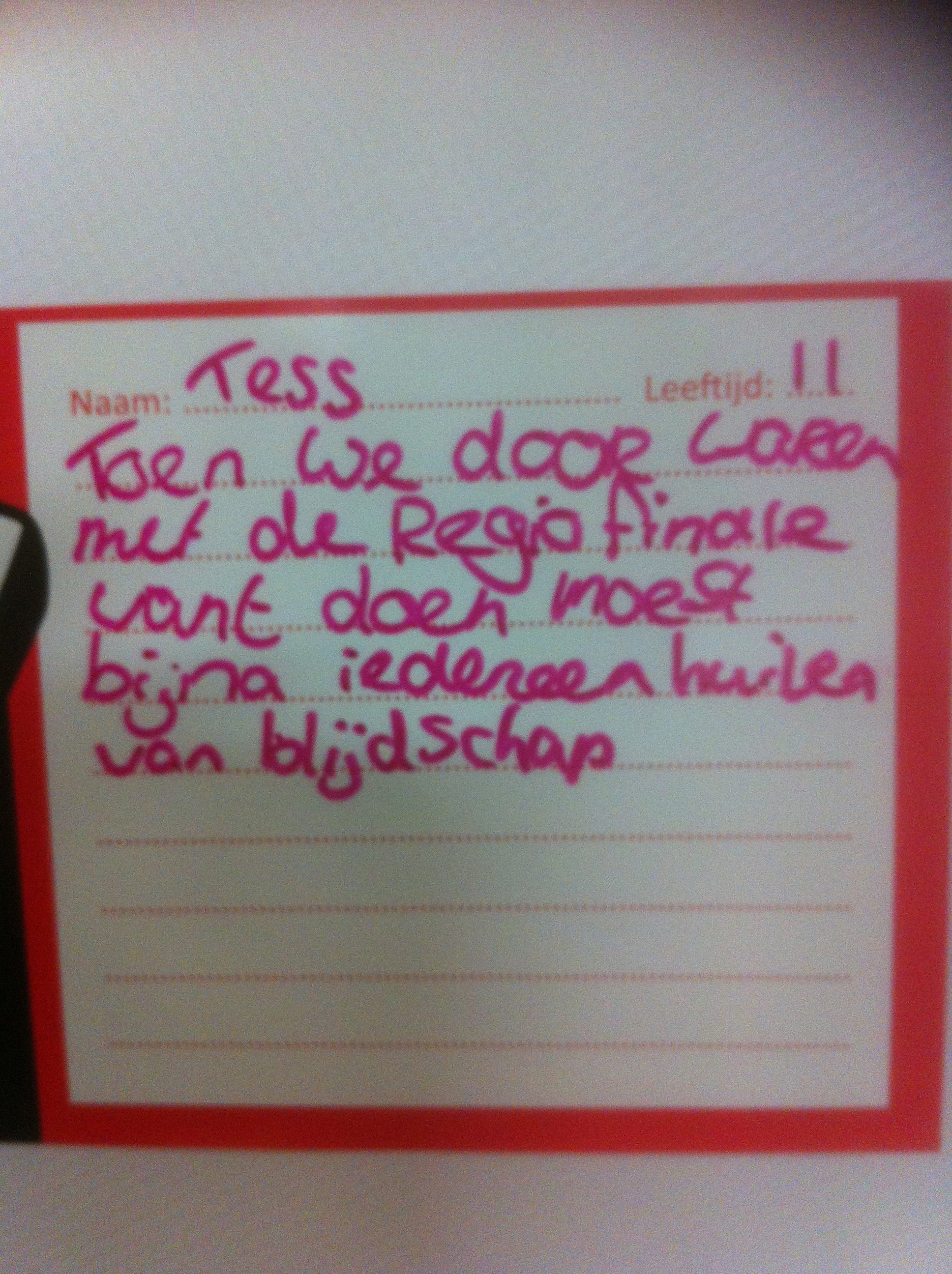 ‘s Avonds eten we samen met de 160 vrijwilligers tevreden en voldaan terugblikkend op de dag. Het was weer een geweldige ervaring: zoveel jong talent, net zoveel meiden als jongens, en allemaal bezig met het gebruik van techniek en technologie om de echte problemen op te lossen. Een ervaring die ze niet snel zullen vergeten, en of ze nu techniek gaan kiezen of niet: ze kennen nu allemaal dat WOW gevoel!