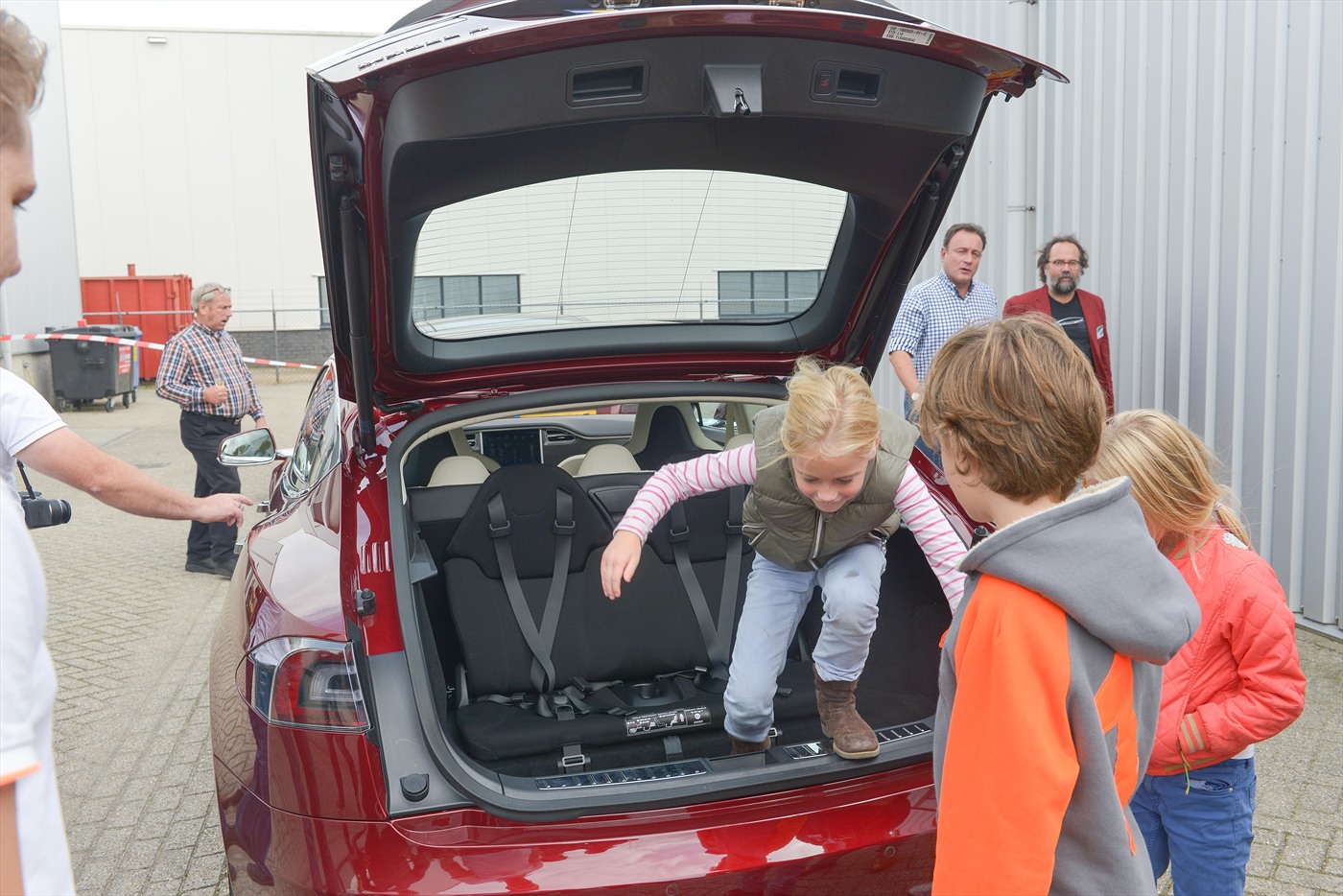 Gisteren hadden we de Tesla Launch Party in Waalwijk. Georganiseerd door Jetje, Wiebe en Peter van het Tesla Motor Club forum. Het was een geweldig leuke bijeenkomst, met prachtige gloednieuwe Model S’en te bewonderen (zijn de grijze velgen nu wel of niet mooier dan de zilveren?), erg veel Sig rood trouwens. De eerste niet Signature (feller rood), een P85+ (die van ons!), een met de kinderzitjes die naar achterkijken, discussies over de beschermers (alloygators) voor de 21″ velgen (bij die van Jetje er al op), en accesoires uit de USA meegenomen (eind van het jaar waarschijnlijk allemaal ook beschikbaar in Tilburg). De bijeenkomst was gratis, met een vrijwillige bijdrage voor een goed doel, zie hier als je nog wat wilt storten!