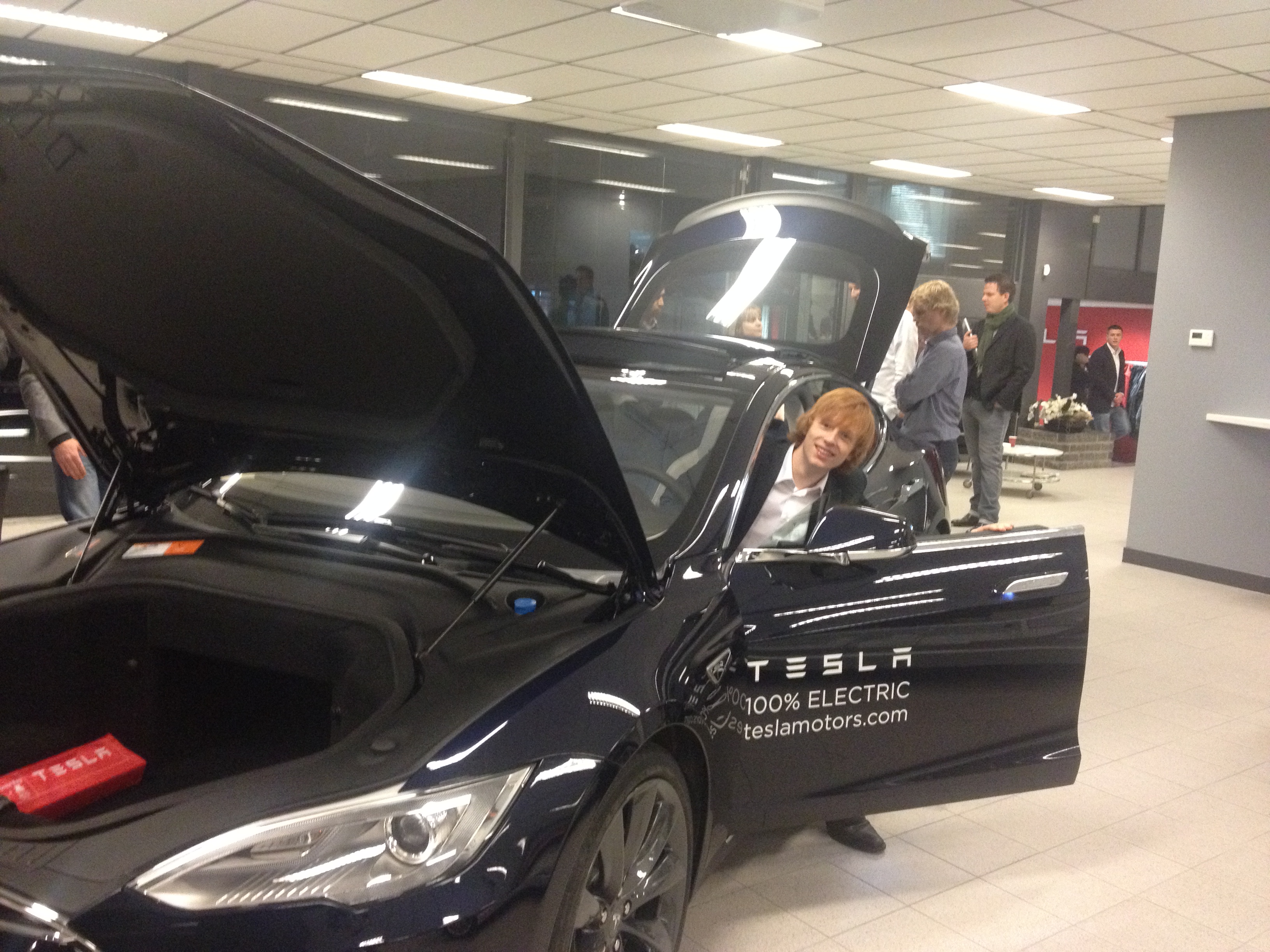 Two weeks ago Tesla Motors organized a meeting for students interested in working at Tesla in the Netherlands, or doing traineeships in their development center in palo Alto in USA. During the day on wednesday, Tesla gave a presentation at Delft University of Technology, attracting about 200 students in the lecture room. In the evening an event was organized in the Amsterdam Service Center:“You are invited to attend The Tesla Hiring Event: “Electrify Your Career!” at the Tesla Motors Service Center – Amsterdam on Wednesday, December 11, 2013. The evening will be an interactive experience with Tesla to learn about the company and how you can be involved. Please reply to this email to confirm your attendance.”