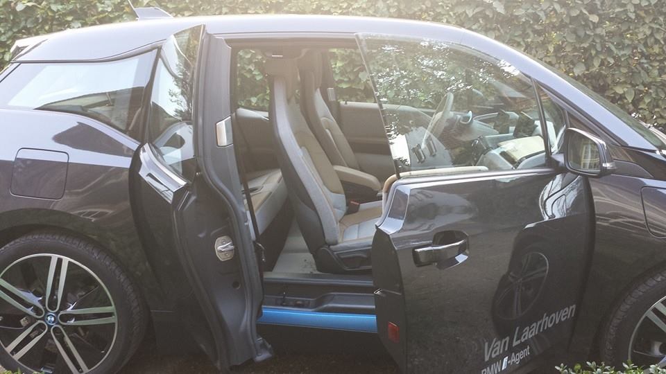 De prijs van de BMWi3 is de helft van die van de Tesla, alles vergelijken is dus ook niet helemaal eerlijk, zo is er geen profiel van de bestuurder in te stellen (schijnt wel te kunnen), zijn de stoelen mechanisch verstelbaar etc. De buitenspiegels gaan wel omlaag in de achteruitstand. De deuren zijn eigenlijk wel heel creatief: de achterportieren gaan alleen open als de voorportieren ook open zijn. Ook de gordels van de voorstoelen zitten aan de achterdeur vast. Wennen, maar toch wel geinig.