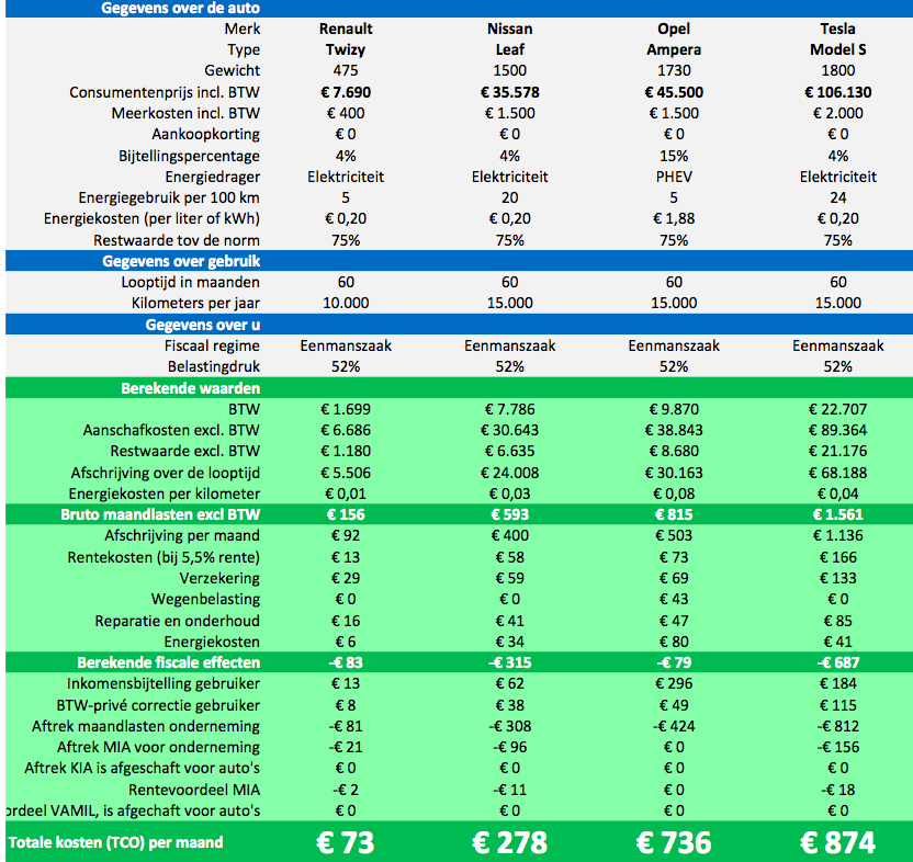 De nieuwe excel file, voor de situatie als je een auto aanschaft in 2016, versie 2 kun je hier downloaden, laat maar weten als dat niet lukt in een email aan mij (m.steinbuch@tue.nl) aanvragen. Iedereen kan dit eenvoudig narekenen, met behulp van de excel sheets. Er stond een BTW berekeningsfout in de vorige versie, is nu gecorrigeerd.
