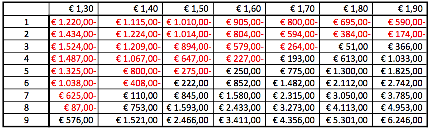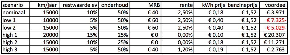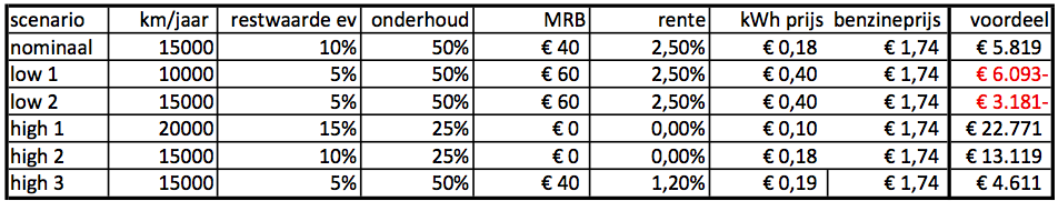 Onder de veronderstellingen van het vorige blog, zijn de daar doorgerekende situaties met een benzineprijs van €1,74 als volgt: