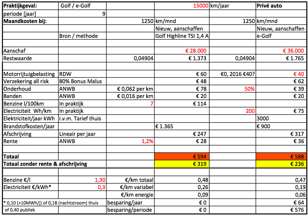 In een vorig blog heb ik voor de particuliere (niet-zakelijke) rijder een aantal berekeningen gemaakt (TCO-Total Cost of Ownership) voor elektrisch rijden vergeleken met benzine, met een benzinerprijs van €1,74. Omdat de benzineprijs nu zo’n €1,52 is, leek het me goed opnieuw eens wat concrete berekeningen te doen.