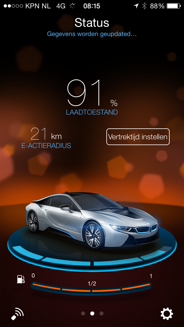 Ook de BMWi8 heeft een App op de telefoon. Die is mooi gemaakt, en handig met voorverwarmen, maar als je rijdt, kun je de wagen niet real-time volgen, dat is dan weer jammer. Er zitten wel erg leuke statistieken op met je eigen rijgedrag vergeleken met de gemiddelde BMWi8 rijder.