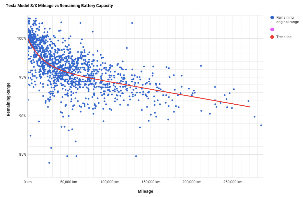 Tesla Model S battery degradation data