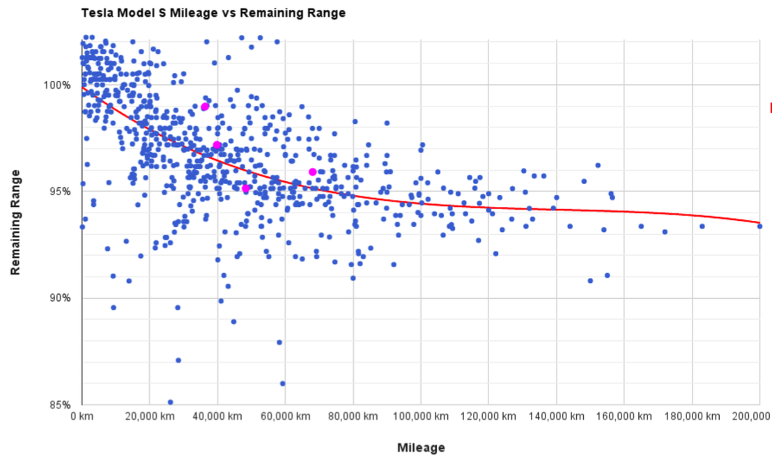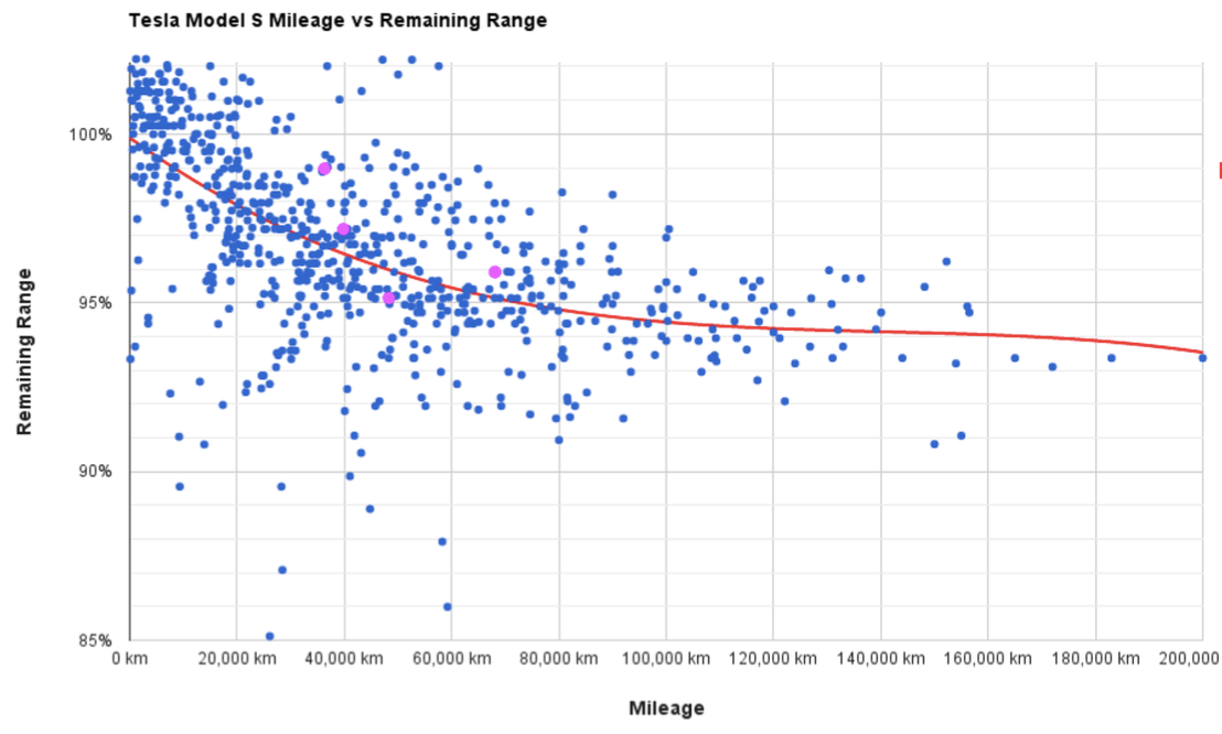 Tesla Model S battery degradation data