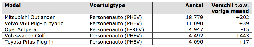 Tenslotte is van de huidige cijfers ook weer de verdeling over de diverse merken interessant, totaal aantal (top 5) PHEVs hieronder (vergelijk met juli) en de groei: