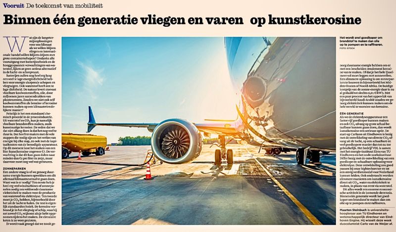 Afgelopen week ging mijn FD column over het maken van kunstmatige kerosine, dus uit waterstof en CO2. Hier staat een link naar de tekst. Een foto met de informatie staat hier: